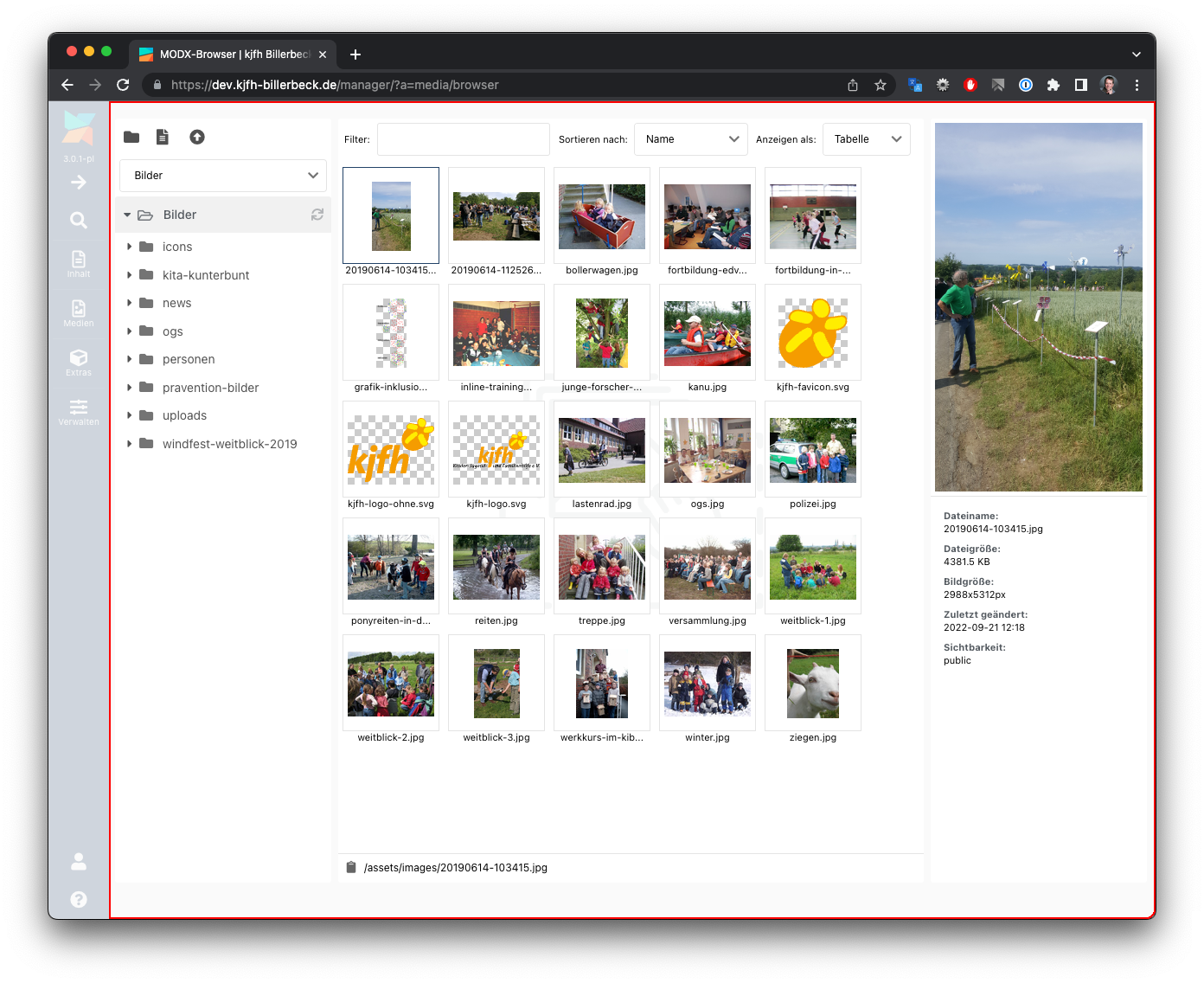 Mit den Medienquellen und Verzeichnissen innerhalb lassen sich die Bilder der Website gut strukturieren.